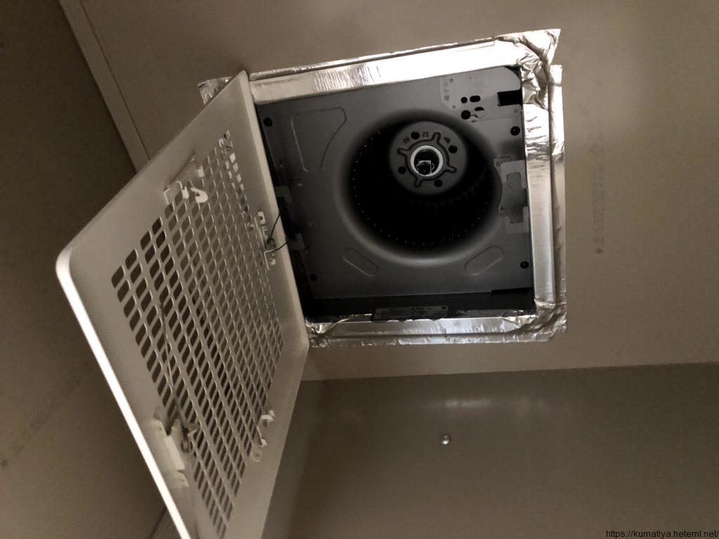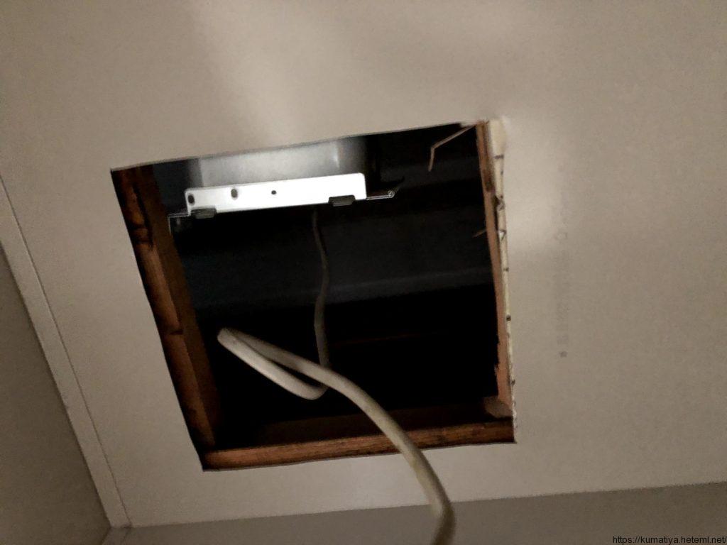 「フードは取り付けてある」って聞いてたので、てっきり壁換気扇かと思ってましたが、天井埋め込み換気扇でした。